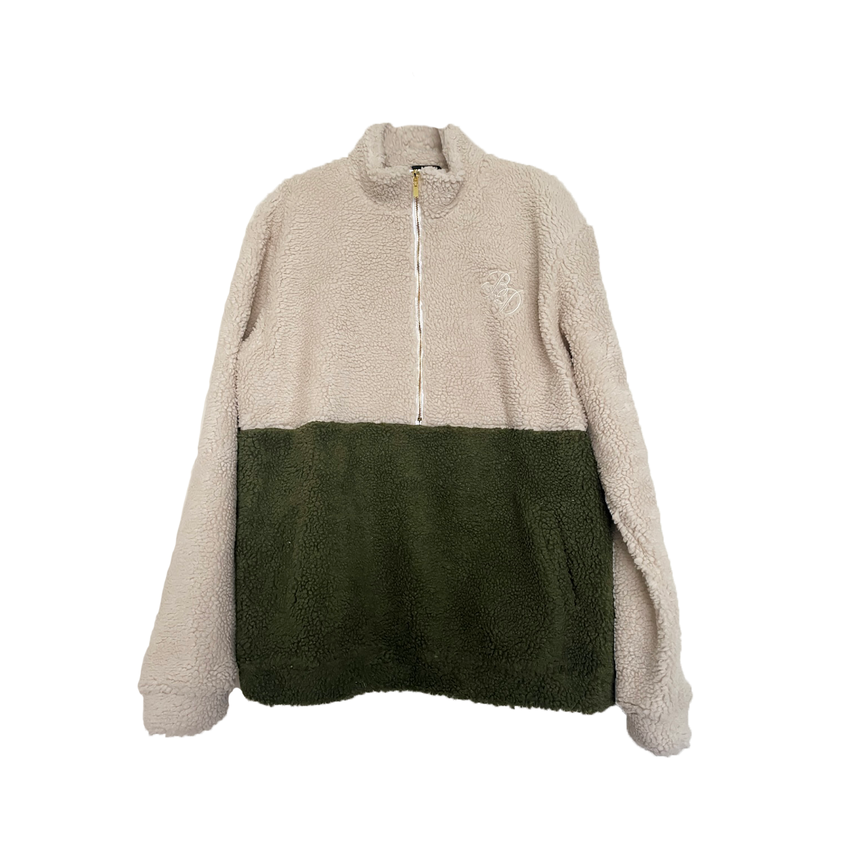 Cream/Olive Sherpa Fleece Zip